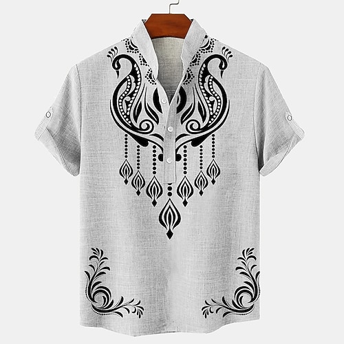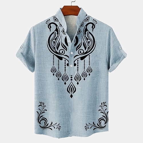 Per uomo camicia di lino Camicia Henley camicie retrò Camicia d'epoca Camicia etnica Etnico Giornaliero Per eventi Blu Beige Grigio Manica corta Alla coreana Estate Primavera Abbigliamento Stampa