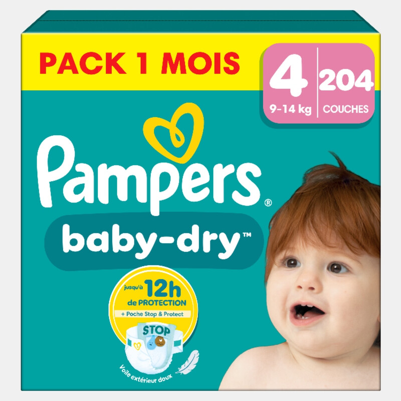Pampers Baby-Dry Pack 1 Mois, Taille 4, 204 couches