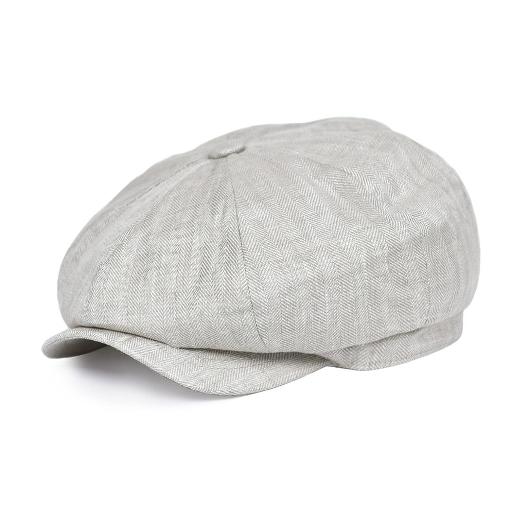 Herringbone Linen Newsboy Cap Men Summer Women Bakerboy Caps Breathable Flat Hat Apple Beret Hats 007 63cm beige