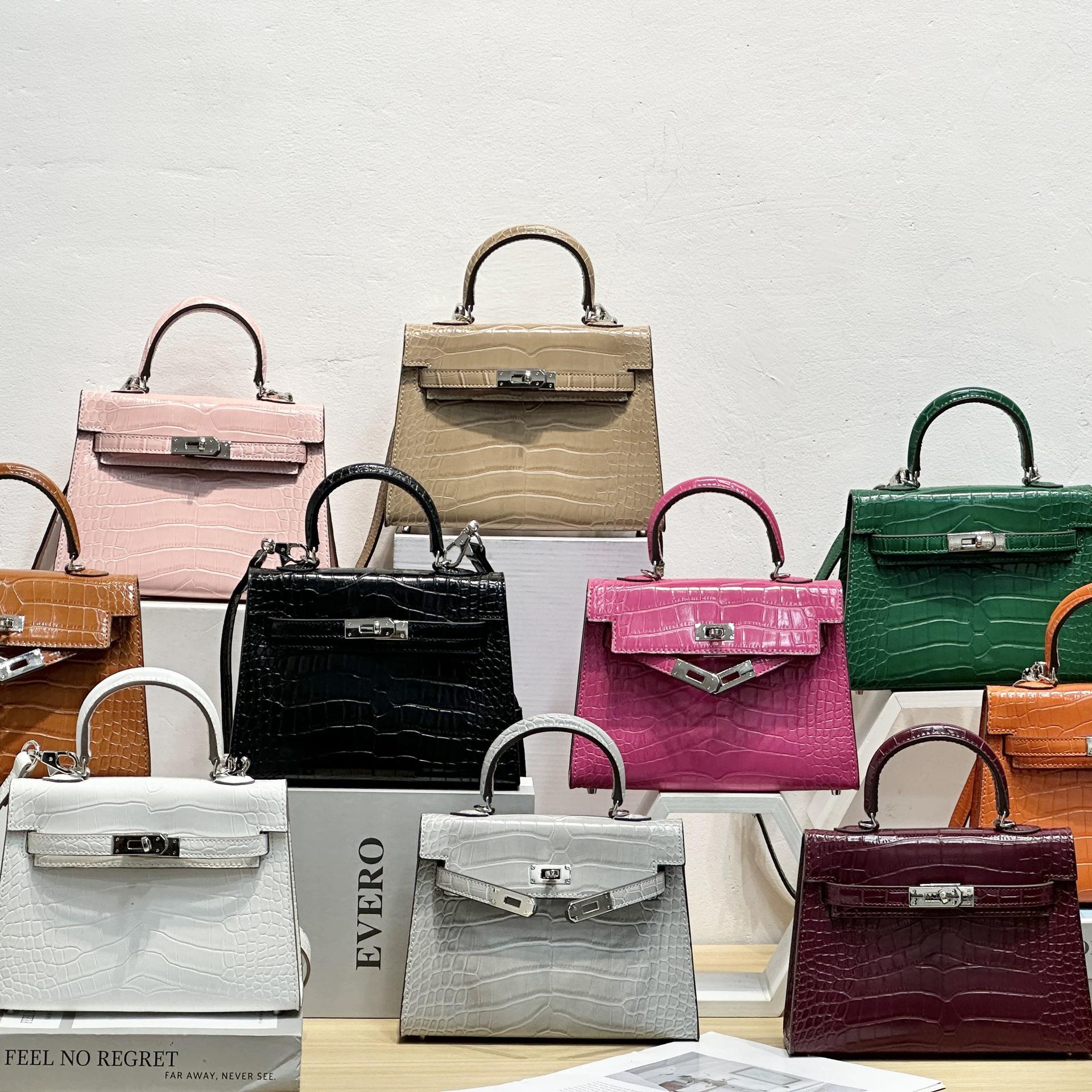 Mini Kelly Tas met Krokodillenpatroon: Dames High-End 2025 Lente/Zomer Trendy Schouder-/Crossbody Handtas bruin