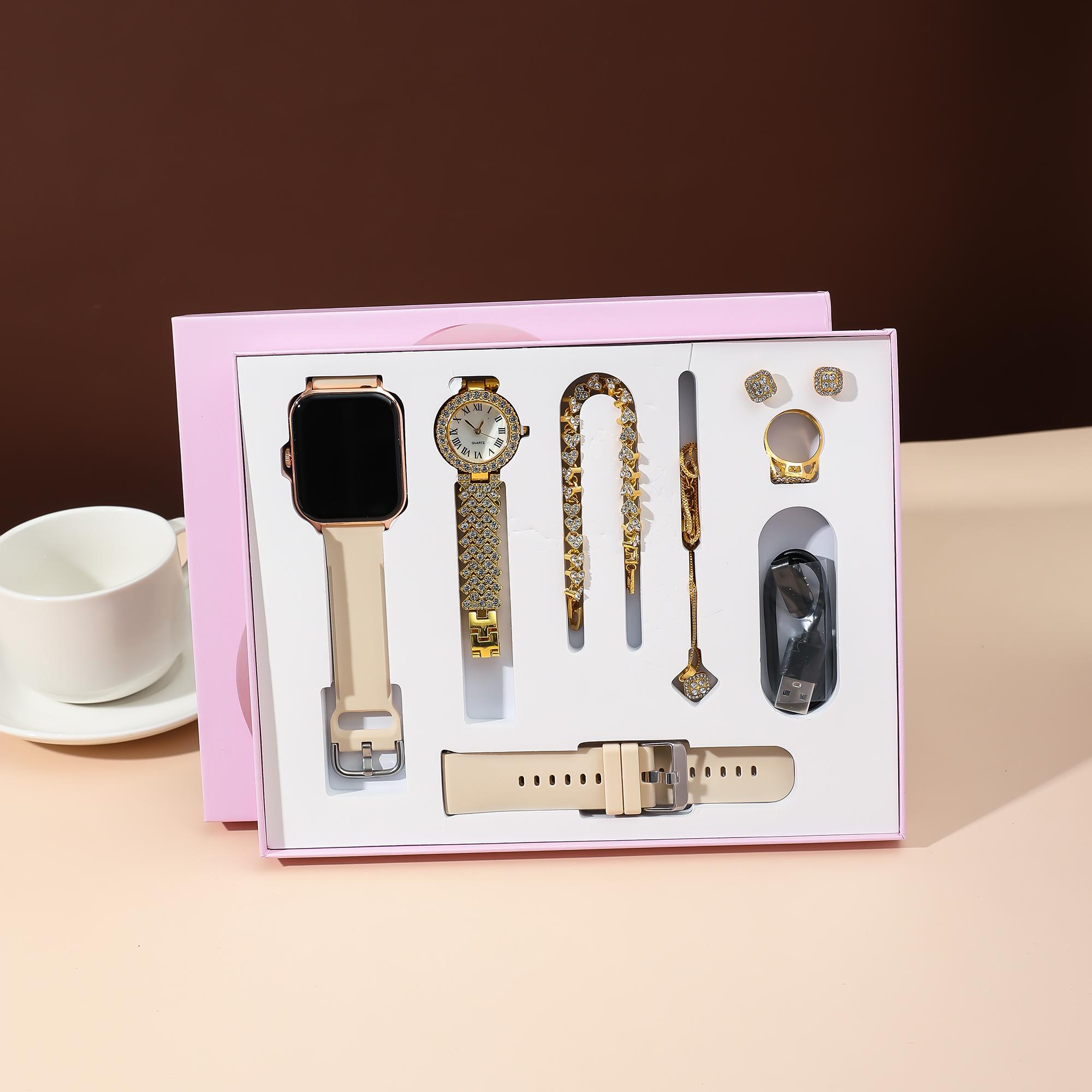 Nouvelle montre connectée A58 Plus pour femmes, ensemble de bijoux avec incrustation de diamants, montre de sport Bluetooth 8-en-1. multicolore