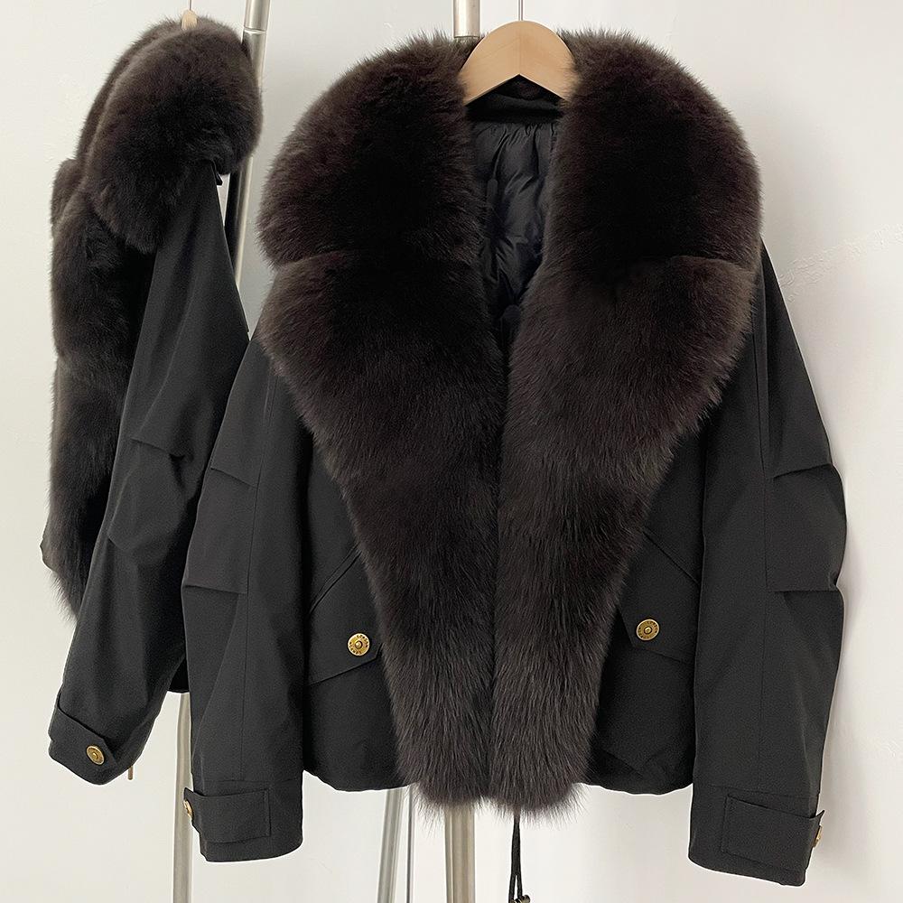 Pelskåpejakke Mote Kort Hvit Dunjakke Vinterklær Kvinner Ekte Pels Boblejakke cm