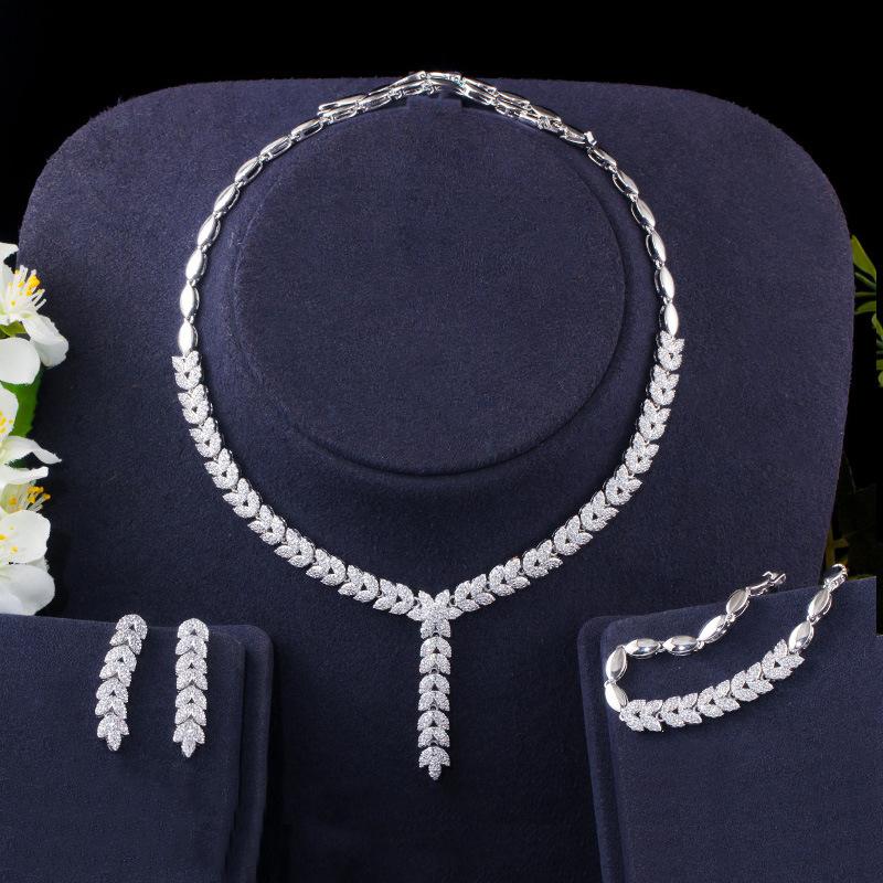 Ensemble de Bijoux Romantiques Zircon pour Mariée Collier Boucles d'Oreilles Bracelet Ensemble 3 Pièces, Accessoires Robe de Mariée Mariage Building S