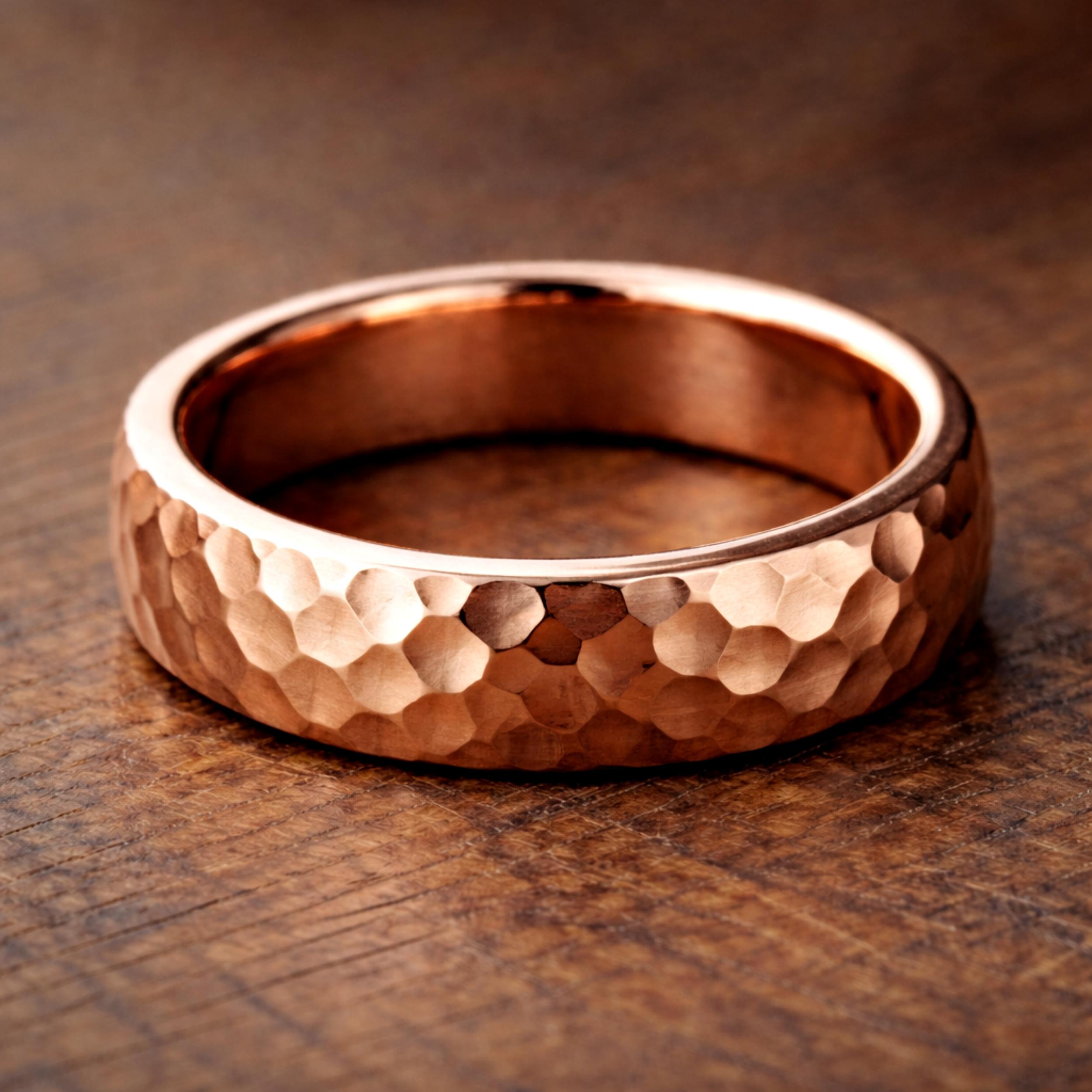 Bague en Cuivre Pur Martelé, Anneau Rustique Fait Main, Bague Minimaliste en Cuivre Massif, Anneau Simple pour le Quotidien cuivré
