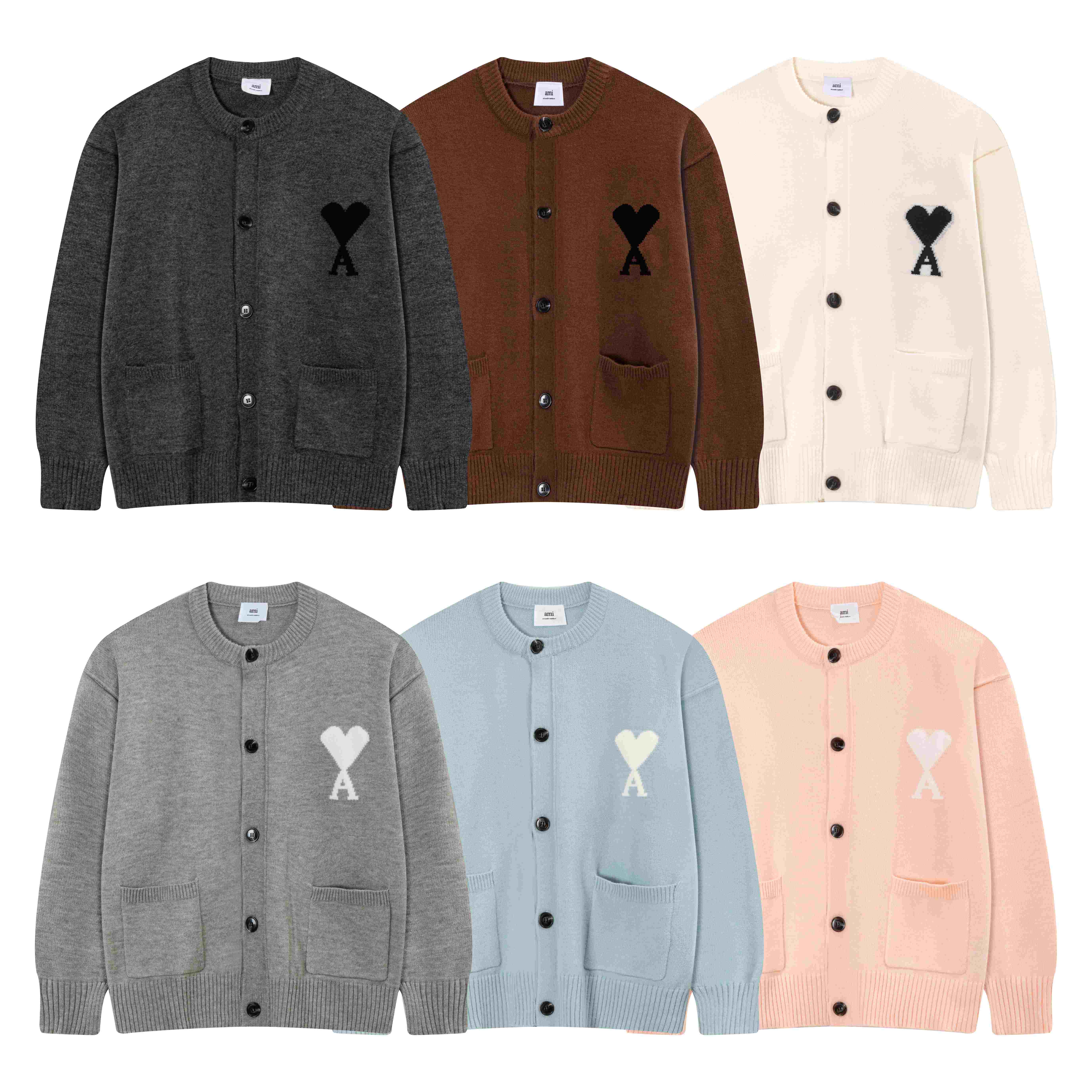 AMI 2025 Autumn/Winter Embroidered New Cardigan Men's V-neck Long Sleeved Sweater Knitted Coat cm