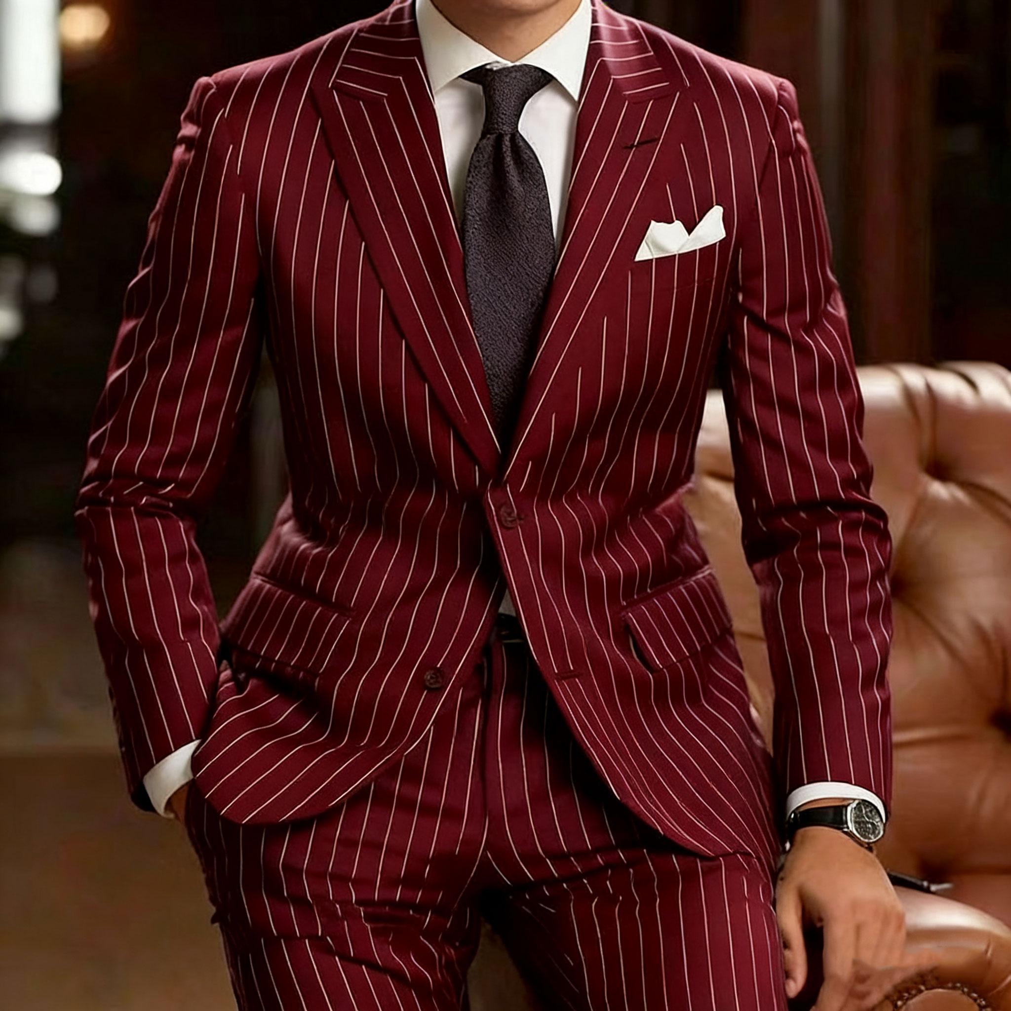 Mote Dobbeltspent Spisskrage Blazer Kongeblå Stripete Herredresser Skreddersydde Bryllupssmokinger 2-delt Jakke Bukse Antrekk cm brun