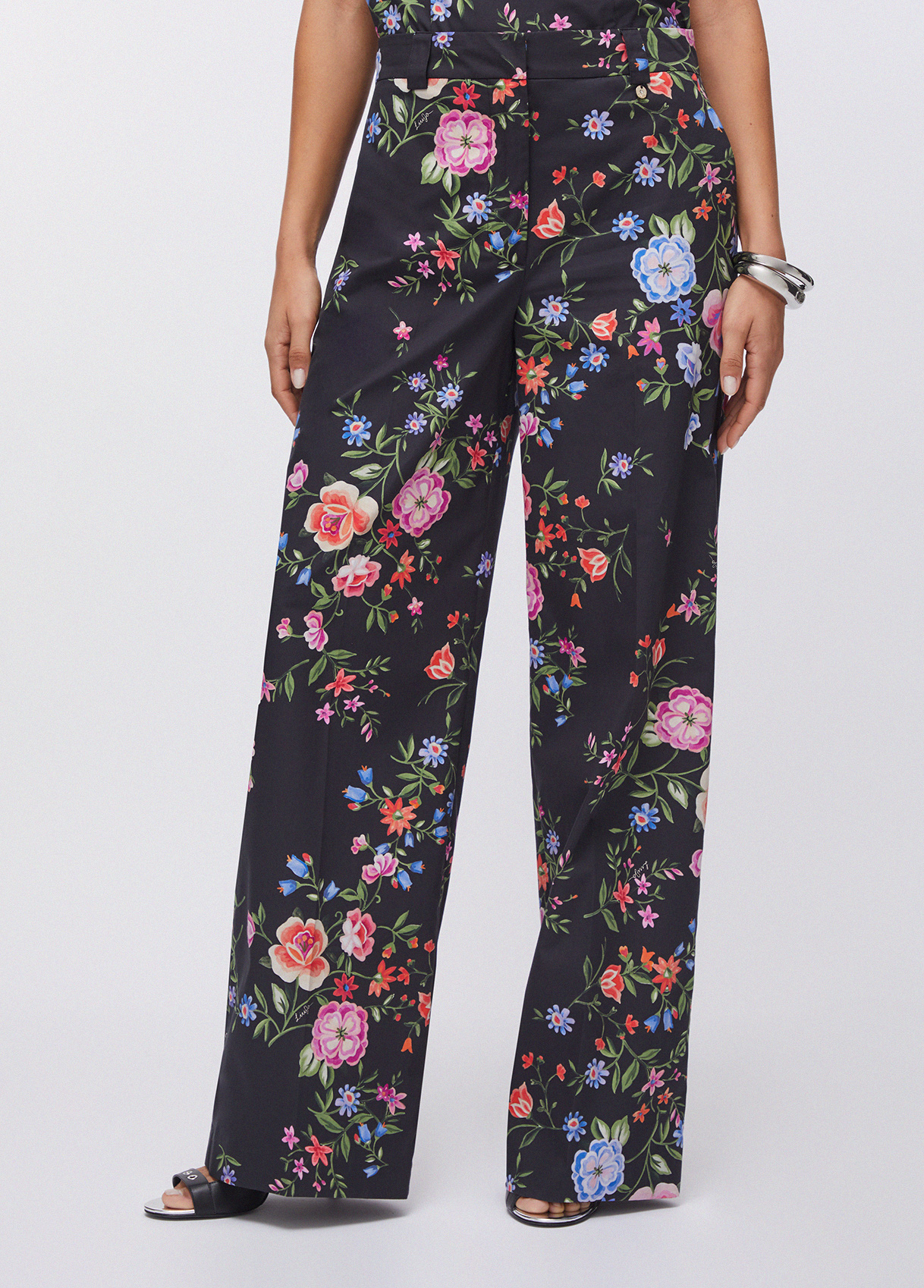Liu Jo Pantaloni Straight A Fiori, Nero A Fiori, 46