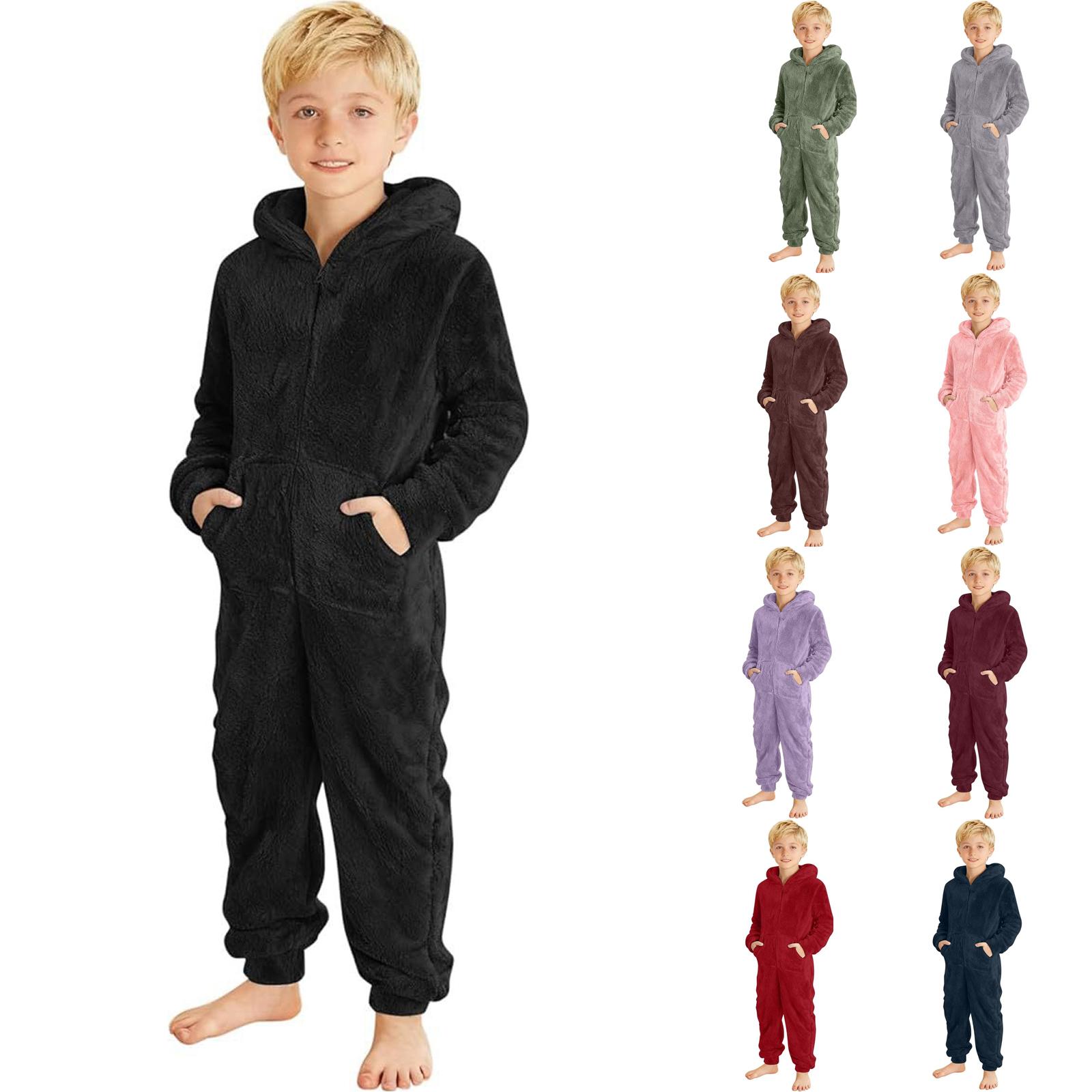 Kinder Mode Einfarbiges Fleece Kapuzen-Onesie Haus Schlafanzug Body cm
