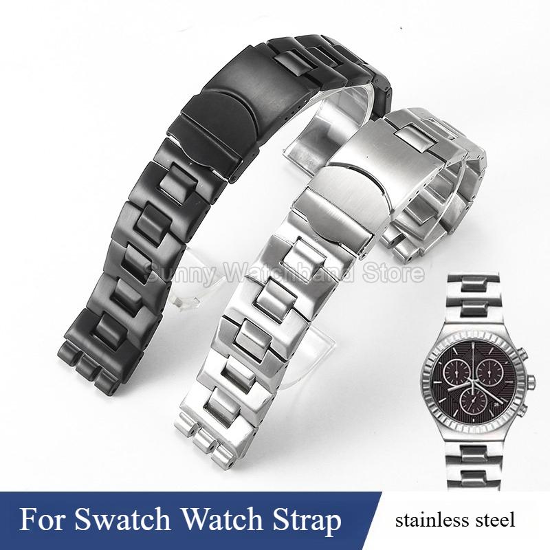 Silver Black for Swatch Bracelet 19mm Mid-Convex Style Stainless Steel 316L Watchband Easy-to-Clean Daily Wear Watch Accessories