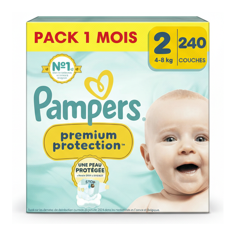 Pampers Premium Protection Pack 1 Mois, Taille 2, 240 couches