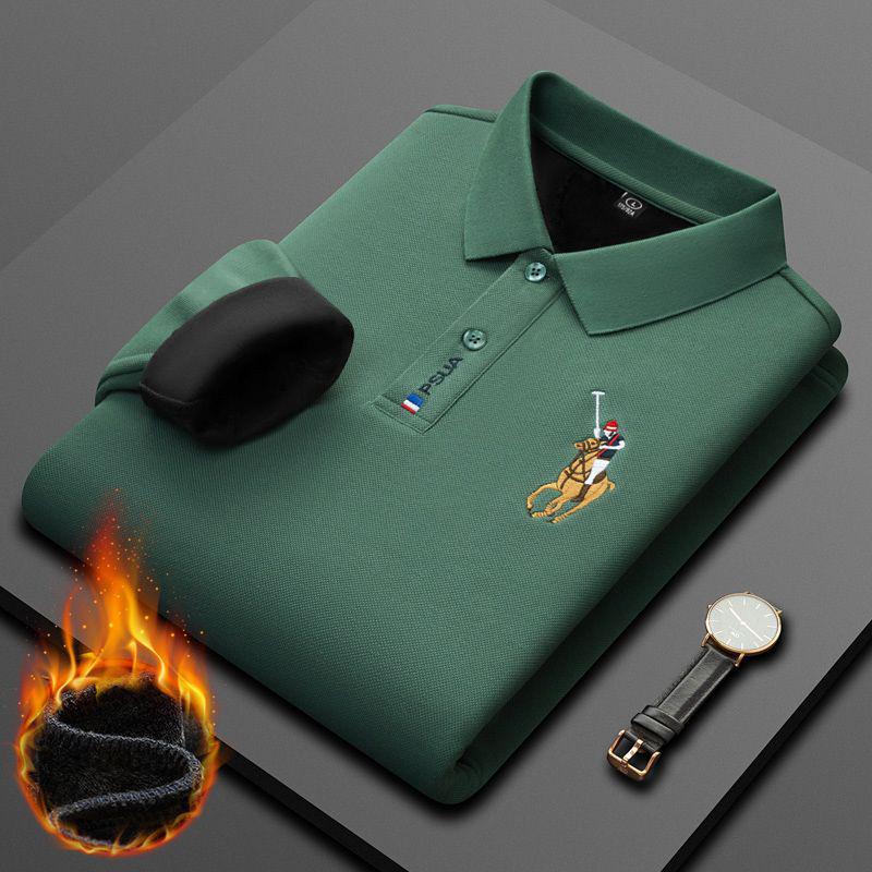 Polo à manches longues pour homme en pur coton doublé polaire - Haut d'affaires à col rabattu pour l'automne et l'hiver cm