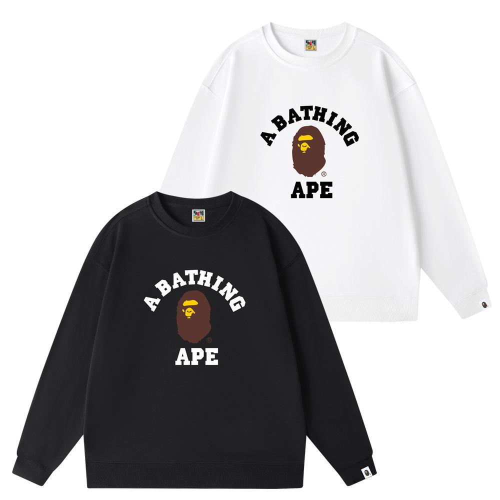 Sweatshirt BAPE Printemps/Automne en Coton Pur Éponge pour Homme - Col Rond, Imprimé Lettres, Coupe Ample, Unisexe, Design Tendance Tête de Singe cm b