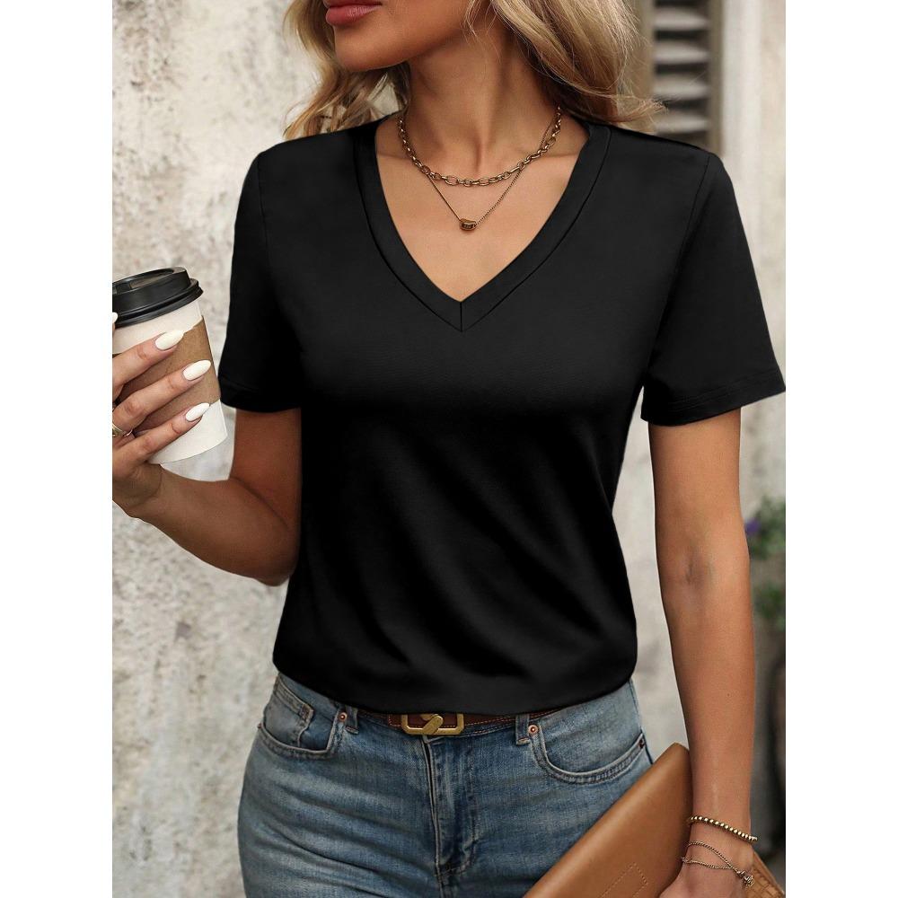 Versatile Women's V-Neck T-Shirt - Short-Sleeve Loose-Fit, Soft Fabric for Yoga, Casual Walks & Daily Wear cm