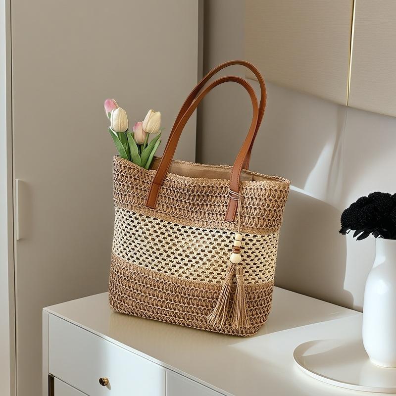 / Cross Border Weaving Basket Leather Tray Extra Large Capacity Torebka pod pachami damska czarny