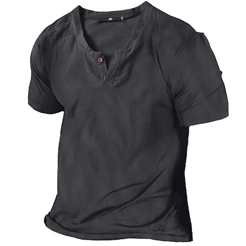Per uomo Camicia Estiva Camicia casual Camicia da Spiaggia Maglietta Maglia Henley Manica Corta Semplice Moda Confortevole Scollo a V Vacanza Casuale Quotidiano Estate Grigio scuro Nero Bianco