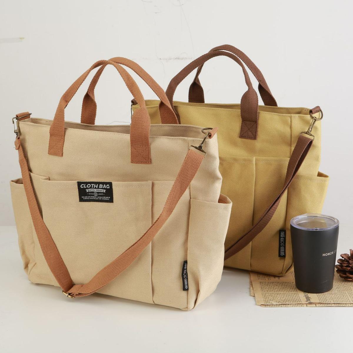 Canvas Tote Bag: Thickened, Multi-Pocket, Japanese-Style for Students - Handbag, Shoulder Bag, Crossbody, Backpack dark brown