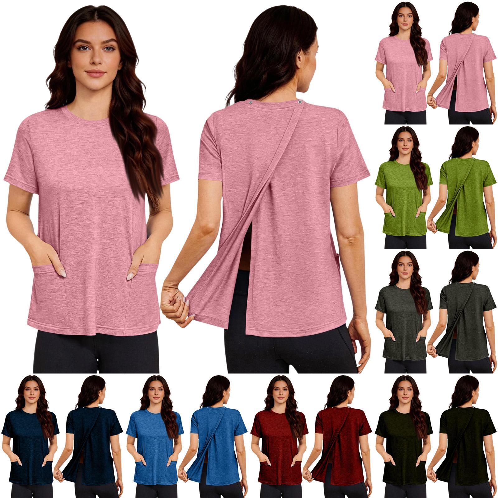 Dames postoperatief shirt met korte mouwen, kleur, sluiting aan de achterkant en zak cm