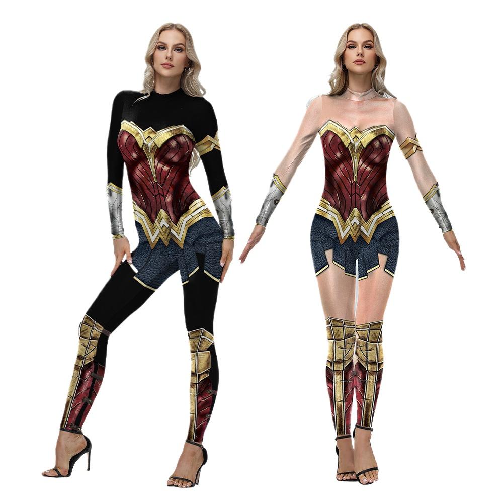 Women Superhero Godness Diana One-piece Tights Jumpsuit Adult Halloween Cosplay Costume Carnival Party Performance Print Outfit cm