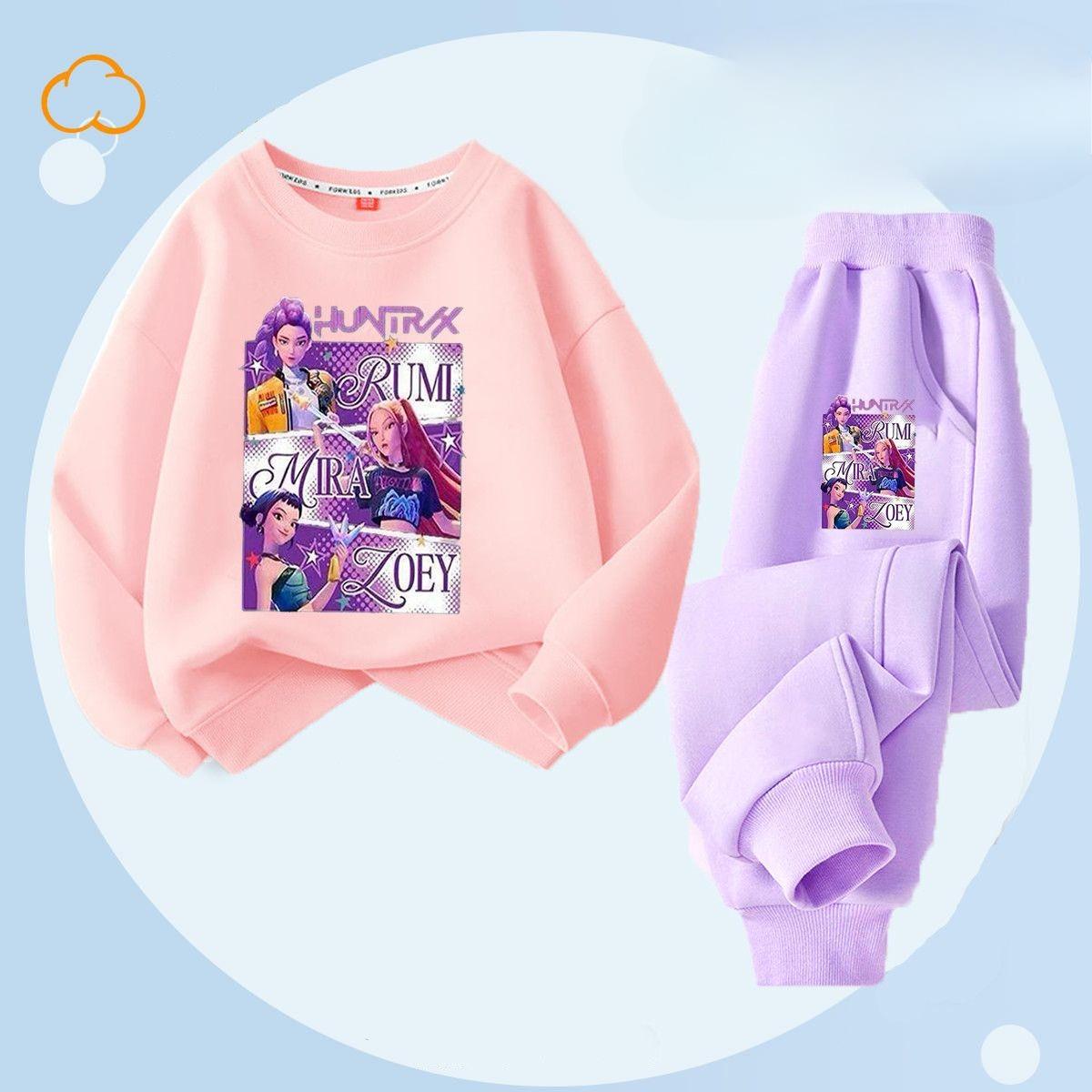 Kinder Mode Hexenjagd K-POP Rundhals-Hoodie Frühling und Herbst Lässiges 2-teiliges Set für Jungen und Mädchen cm