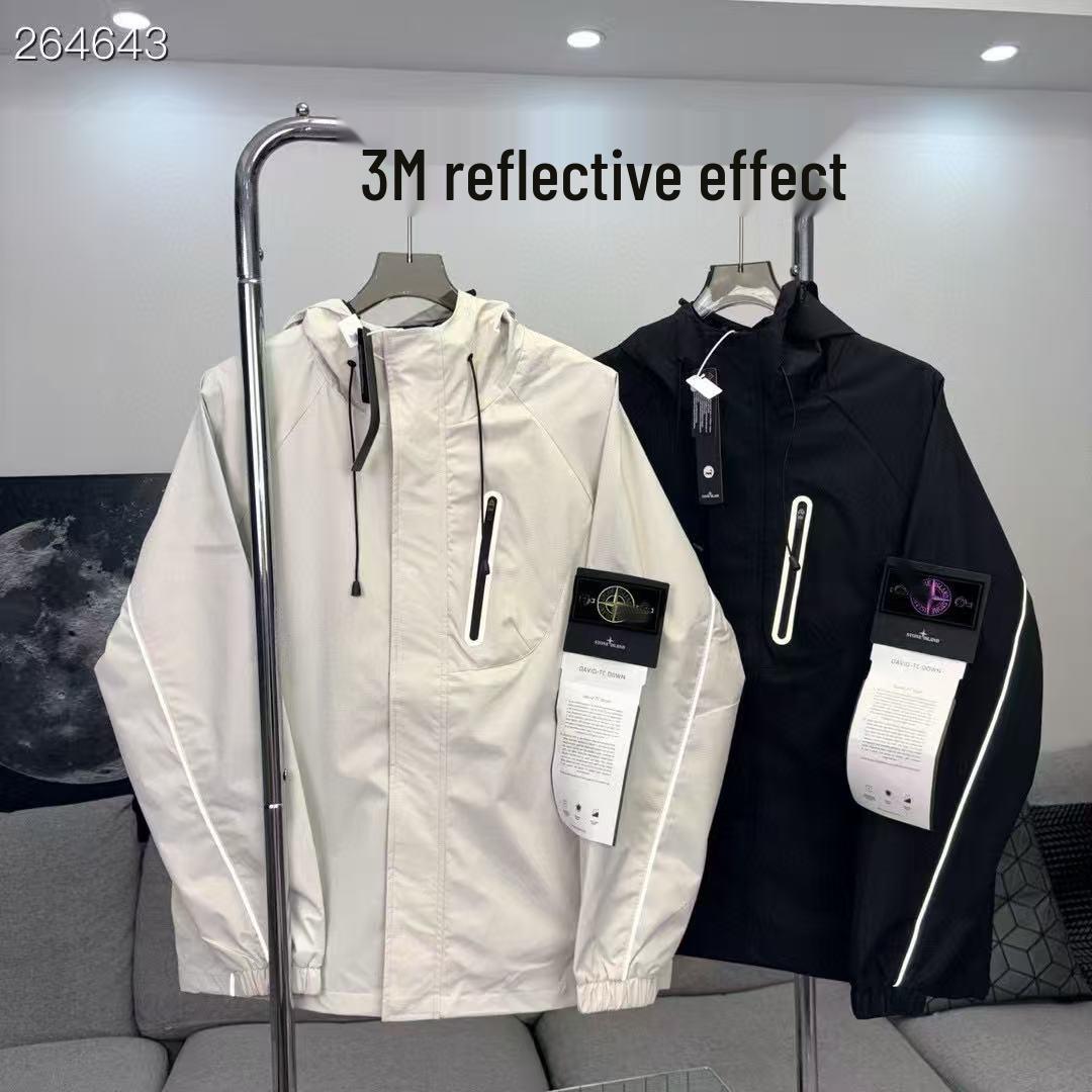 Veste Hard Shell Réfléchissante à Capuche STONEISLAND: Imperméable, Coupe-vent avec Bretelles pour Hommes et Femmes cm noir