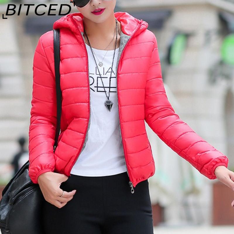 BITCED Høst/Vinter Dunjakke for kvinner Kort lengde Hette Bomullsjakke for kvinner Slim-fit Fortykket Bomullsvattert Overbekledning cm Gul