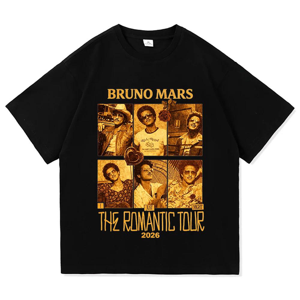 Bruno Mars The Romantic Tour 2026 T-Shirt Sommer Kurzarm Rundhals Herren T-Shirts Streetwear Hip Hop Sänger Grafikdruck Shirt cm