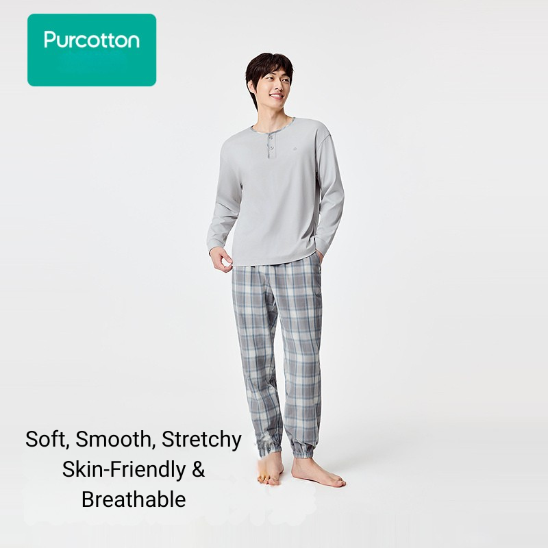Herren Loungewear-Set mit glänzendem Baumwoll-Top + Baumwollgaze-Langhose, Moonlit Rock Gray, Top: UK 38 (M); Hose: UK 33 (M)