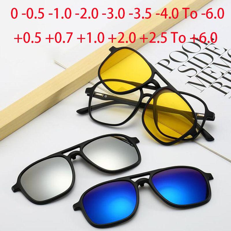 Magnetclip Quadratische Myopie-Sonnenbrille Herren Damen Mit 5 Clip-On-Sonnenbrillen Korrektionsbrillen 0 -0,5 -0,75 Bis -6,0 cm