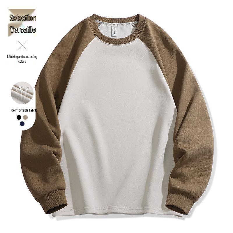 Autumn Style 300g Men's Trendy High-Quality Color Block Patchwork Long Sleeve Round Neck Sweatshirt cm navy blue