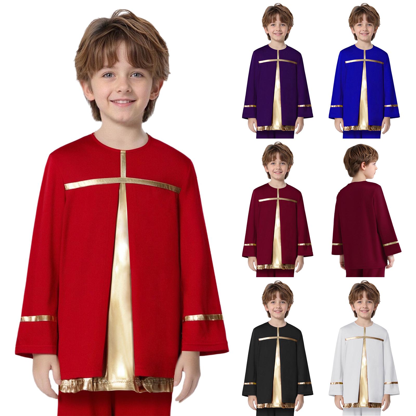 Costume de Danse de Louange pour Garçons Haut à Manches Longues Métallique Color Block Patchwork Col Rond Vêtement Liturgique cm bleu
