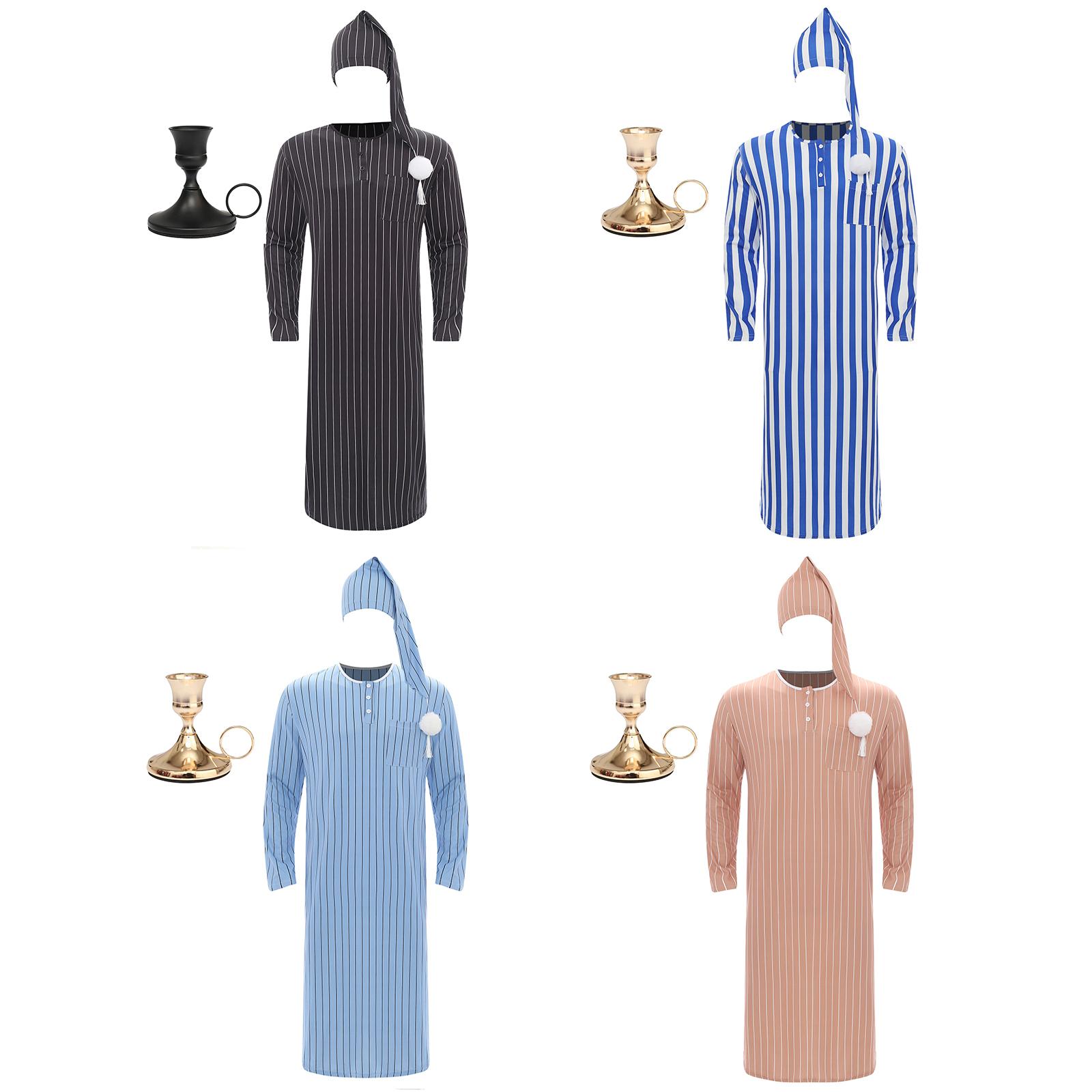 Heren Kerst Slaapjurk Set met Hoed & Kandelaar Gestreept Lange Mouw Pyjama Badjas voor Feest cm