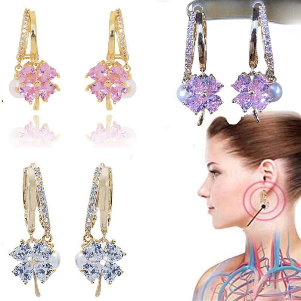 Boucles d'oreilles en germanium Atic Magnétothérapie Pour perte de poids Cristal violet Fleur à quatre feuilles Perle Nouvel accessoire d'oreille de l