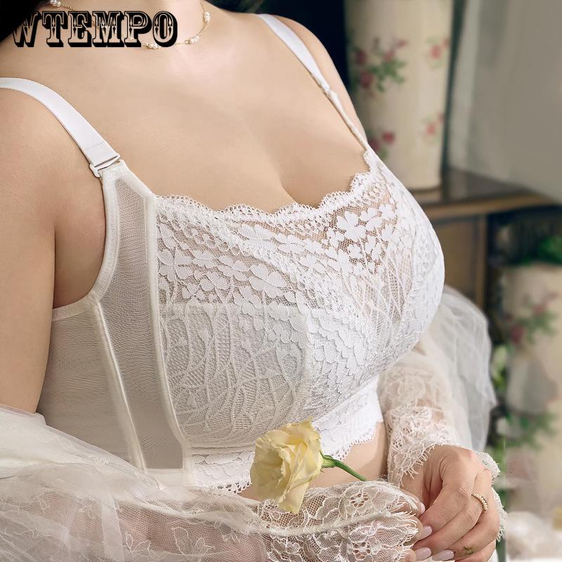 Mesh-BH för kvinnor genomskinlig BH Plus Size Spets Transparent BH Bygel, icke vadderad Bralette cm