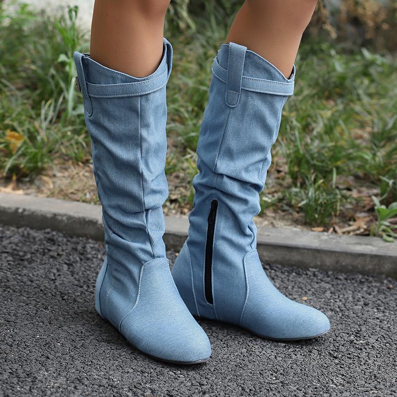 Bottes à talons bas pour femmes automne et hiver bout rond rehausse intérieure décontractées grande taille bottes mi-mollet cm noir