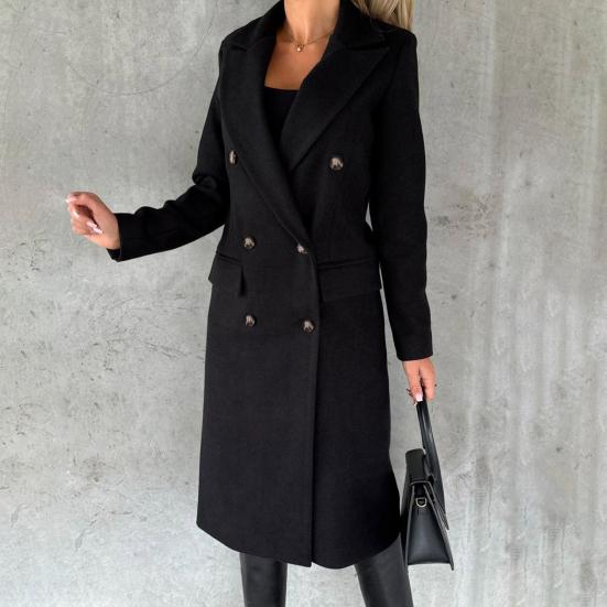 Women Overcoat Double-breasted Long Sleeves Lapel Solid Color Buttons Keep Warm Mid Length Anti-wrinkle Women Winter Coat Female Clothes cm royal blue