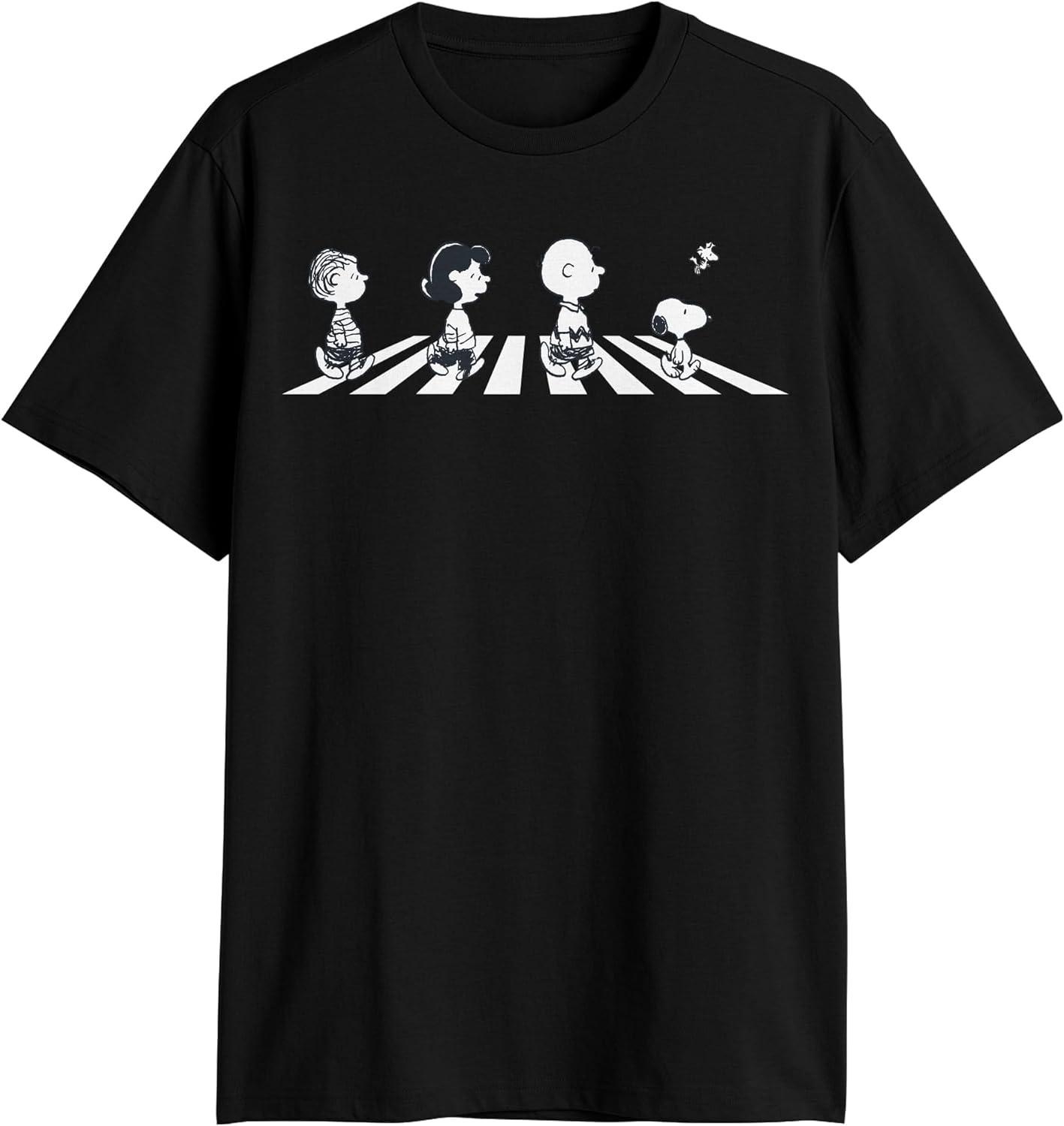 Peanuts T-Shirt Men's Abbey Road Crossing Black and White Graphic Print Tee cm black