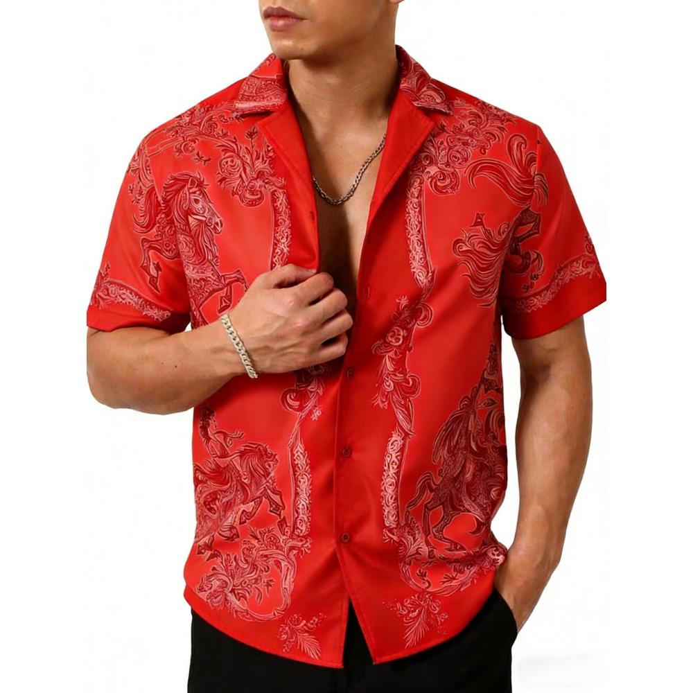 2026 Heren Europees Korte Mouw Shirt Barok Rotan Man HD Patroon 3D Geprint Shirt Hawaïaans Buiten Ontwerper Herenkleding cm
