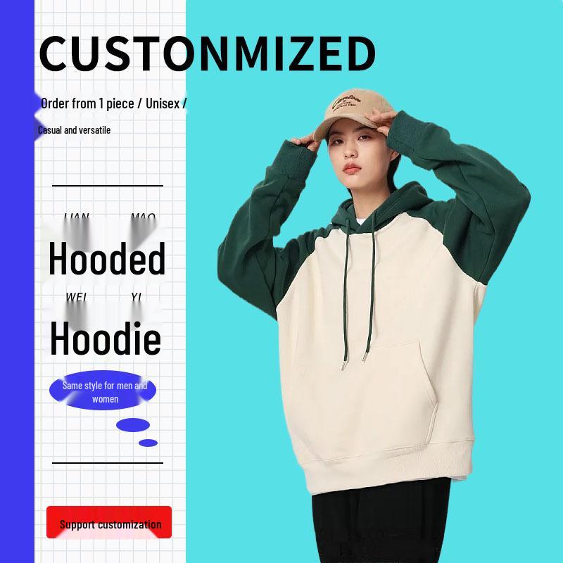 Men's Color Block Raglan Sleeve Hoodie 330g - Casual Versatile Patch Pocket Pullover for Spring & Autumn cm black/white