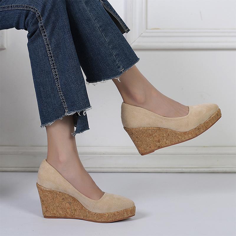 Modne buty FHC na wiosnę/jesień, koturny na wysokim obcasie, damskie czółenka na platformie, płytkie buty flock, wsuwane, ze szpiczastym noskiem, czar