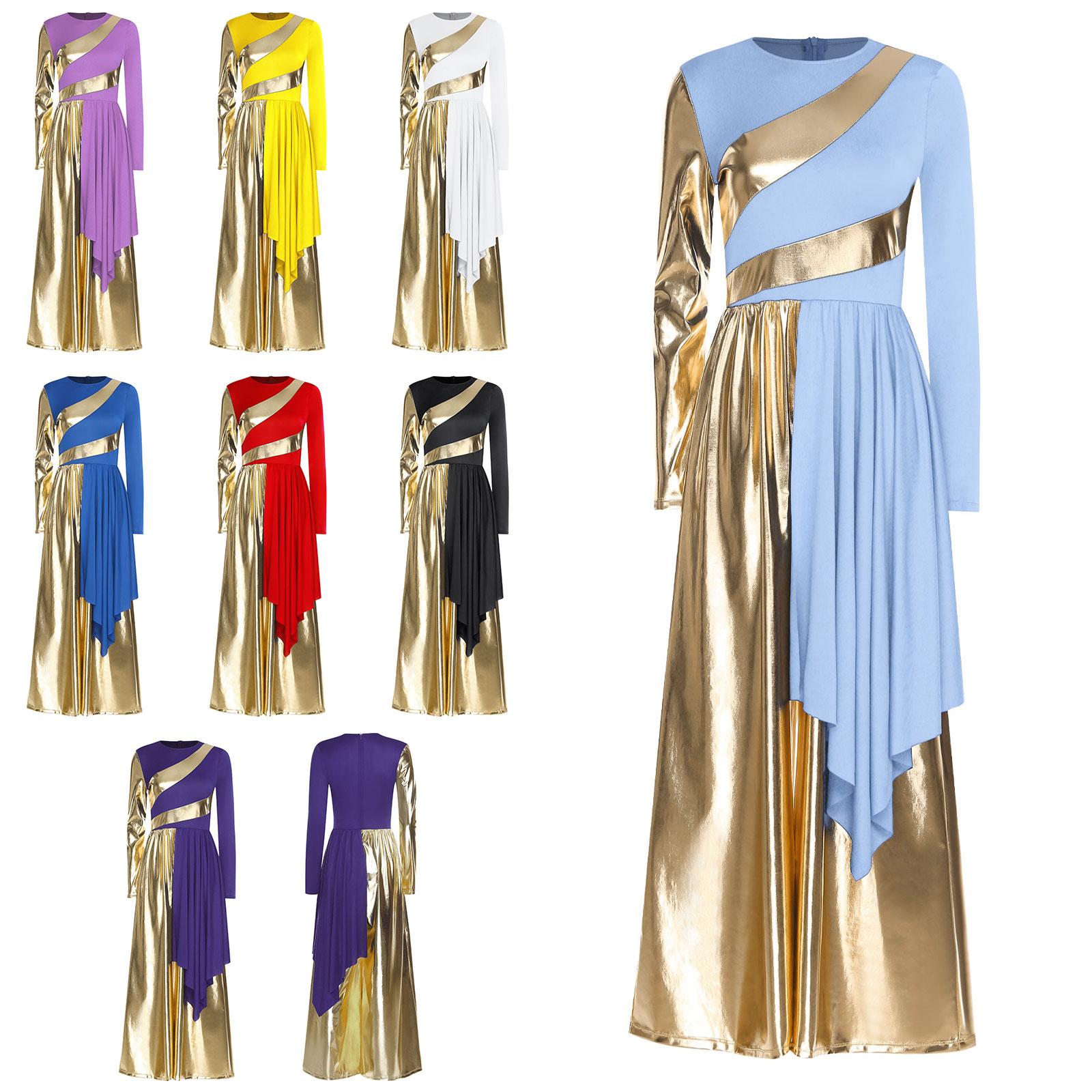 S-3XL Women‘s Liturgical Praise Dance Jumpsuit: Metallic Color Block Patchwork with Dramatic Drape & Wide-Leg Silhouette cm white