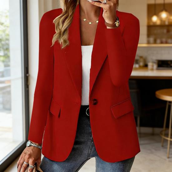 Damkostymkavaj Revers Långärmad Enkelknäppt Kostymjacka med Fickor med Lock Enfärgad Arbete Kontor Affärer Ytterkläder cm vit