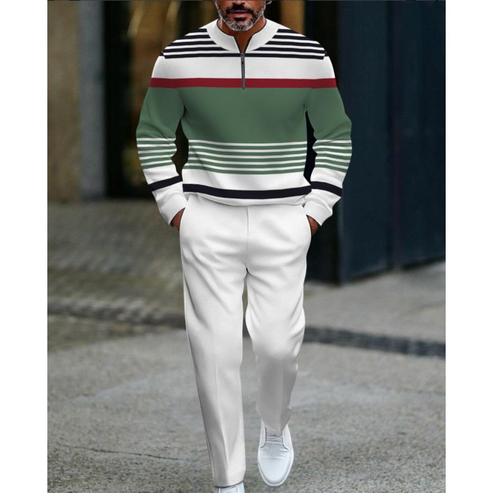Ensembles de mode streetwear pour hommes à manches longues imprimés en 3D printemps automne, col montant demi-zip, survêtement décontracté pour hommes