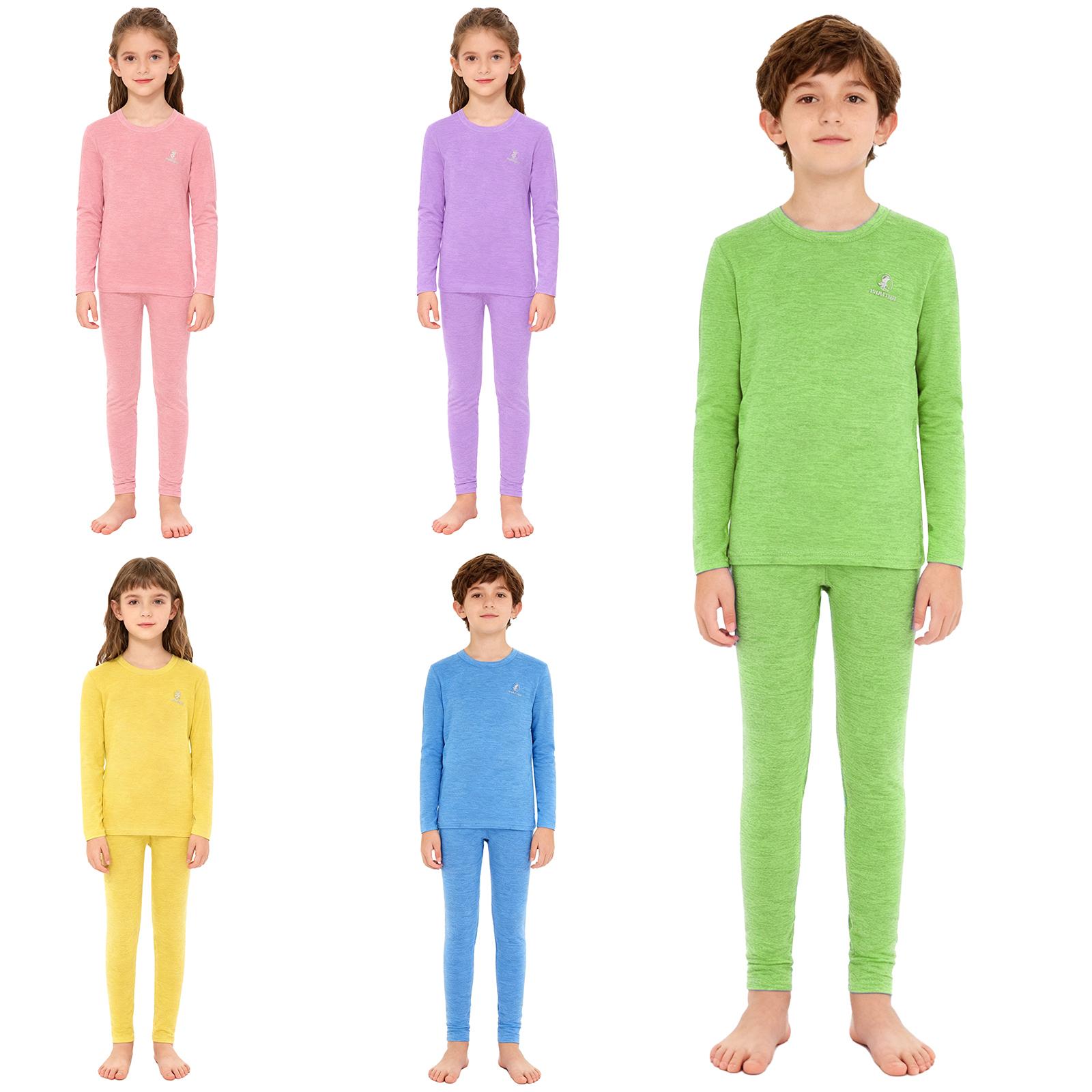 Barn Pojkar Flickor Enfärgad Värmeunderställ Set Sovkläder Loungewear Rundhalsad Långärmad Topp med Resår i Midjan Leggings cm gul