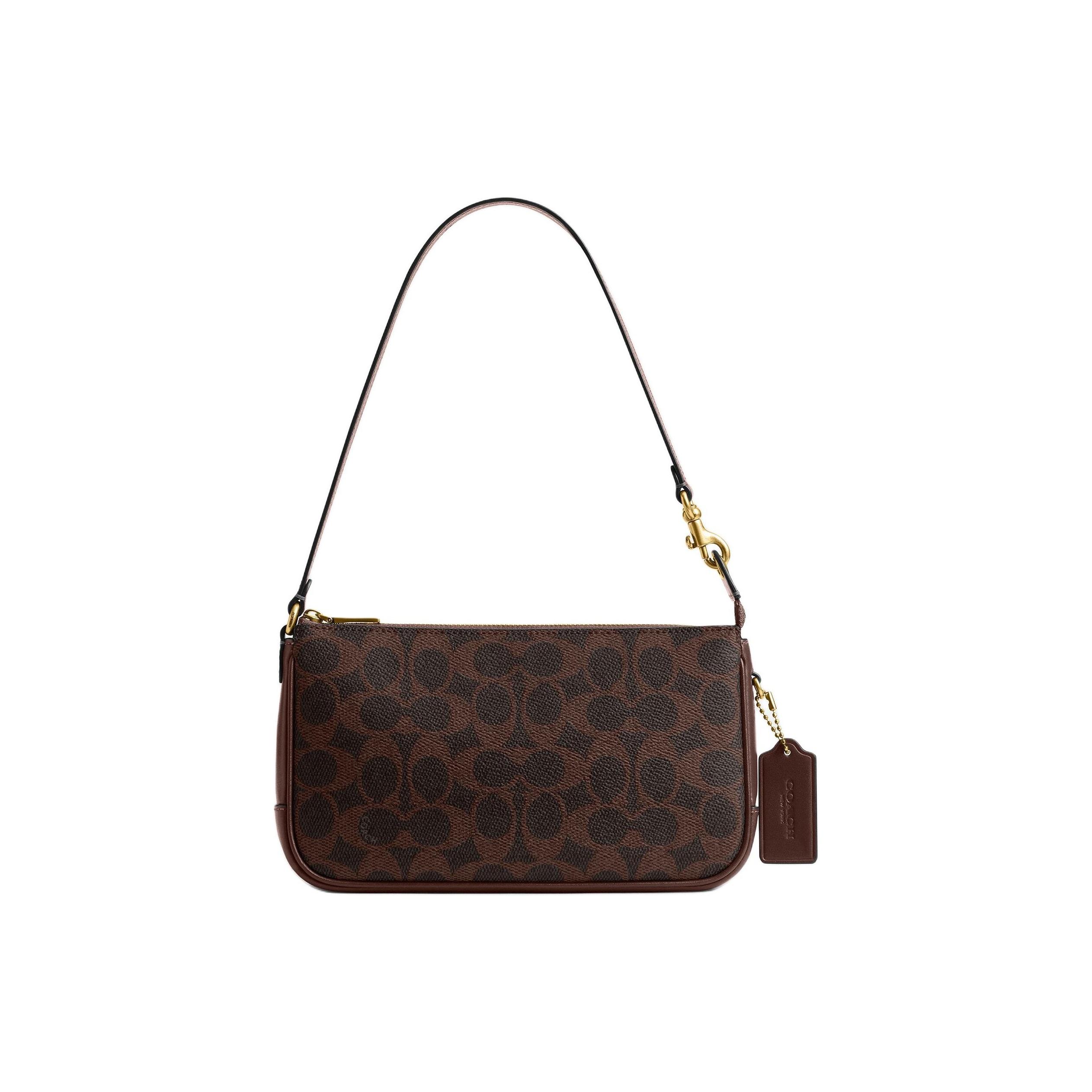 Coach Plaza 21 Brass Metal Hardware Faux Leather And Cowhide Leather Handheld Shoulder Bag Small Women handbags Maple-Brown CCC42-B4YDT