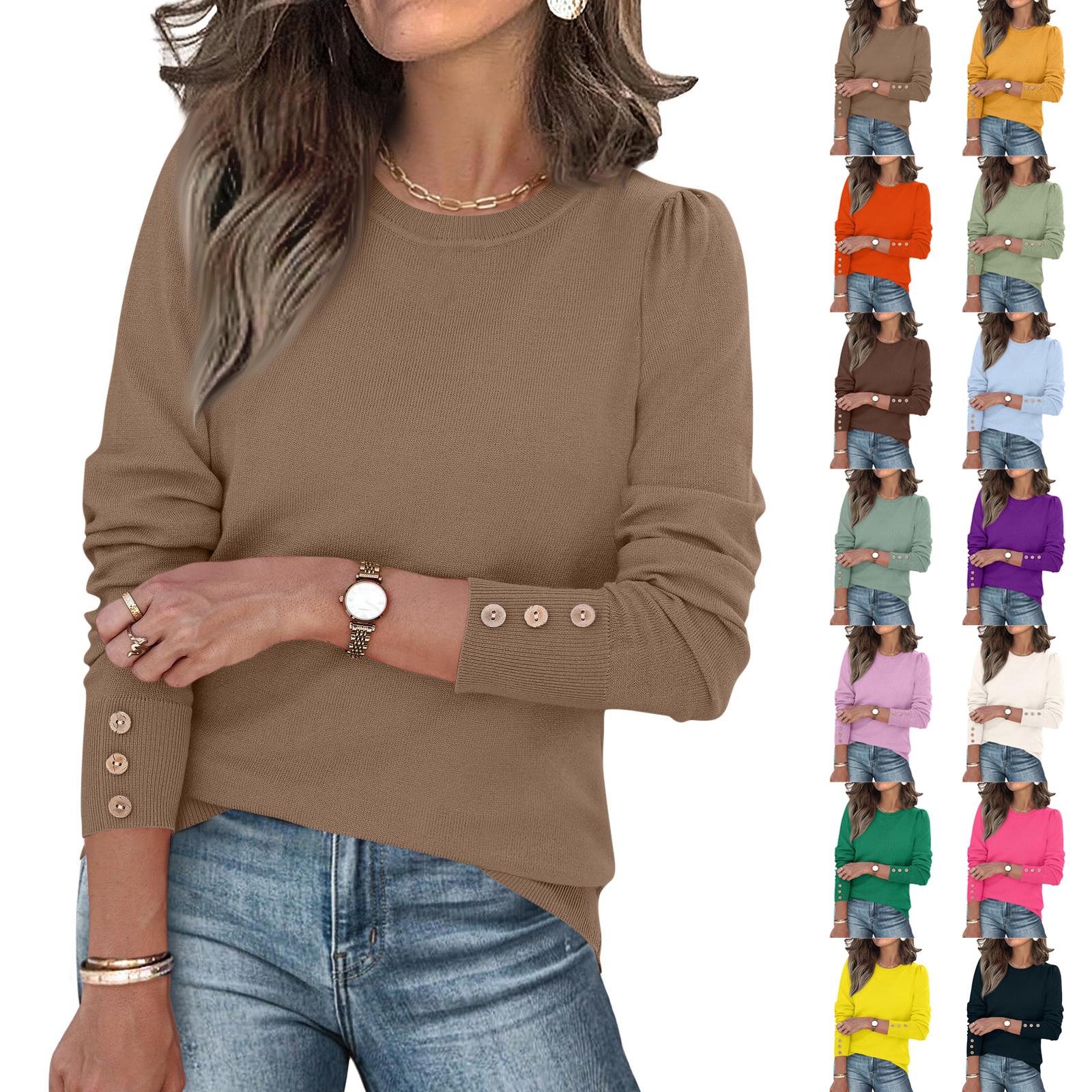 Womens Fashion Long Sleeve Button Cuff Soft Knit Pullover Trendy Tops Solid Color cm beige