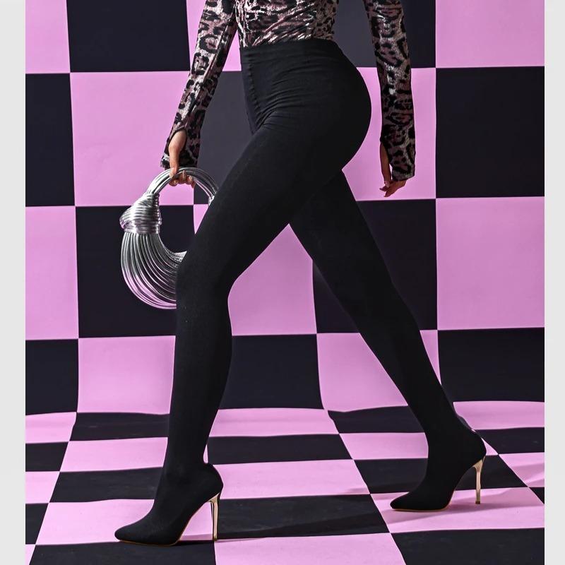 Stretch Fabric Over The Knee Boots Women Fashion Pantyhos Party Nightclub Stripper Heels Size 35-42 cm black