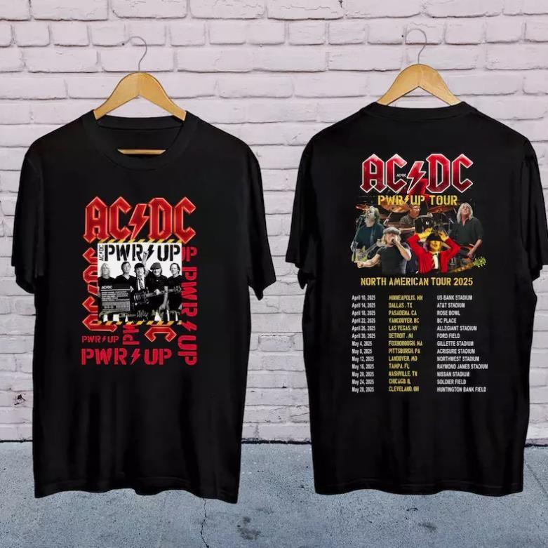 T-shirt Tournée Mondiale 2025 du Groupe ACDC T-shirt Unisexe Concert 2025 Rock Band ACDC Pwr Up cm