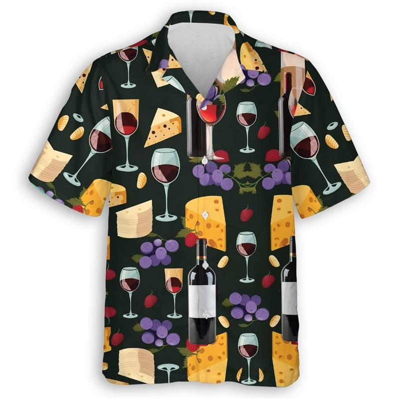 Chemise Hawaïenne Imprimée en 3D avec Graphique de Vin Pétillant pour Hommes Été Manches Courtes Boutonnée Champagne Chemise de Plage Hauts Blouse Hom