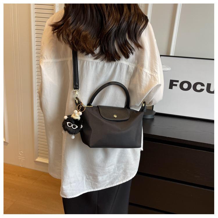 Sac bandoulière en nylon mode femme 2025 - Sac à main porté épaule polyvalent et texturé noir