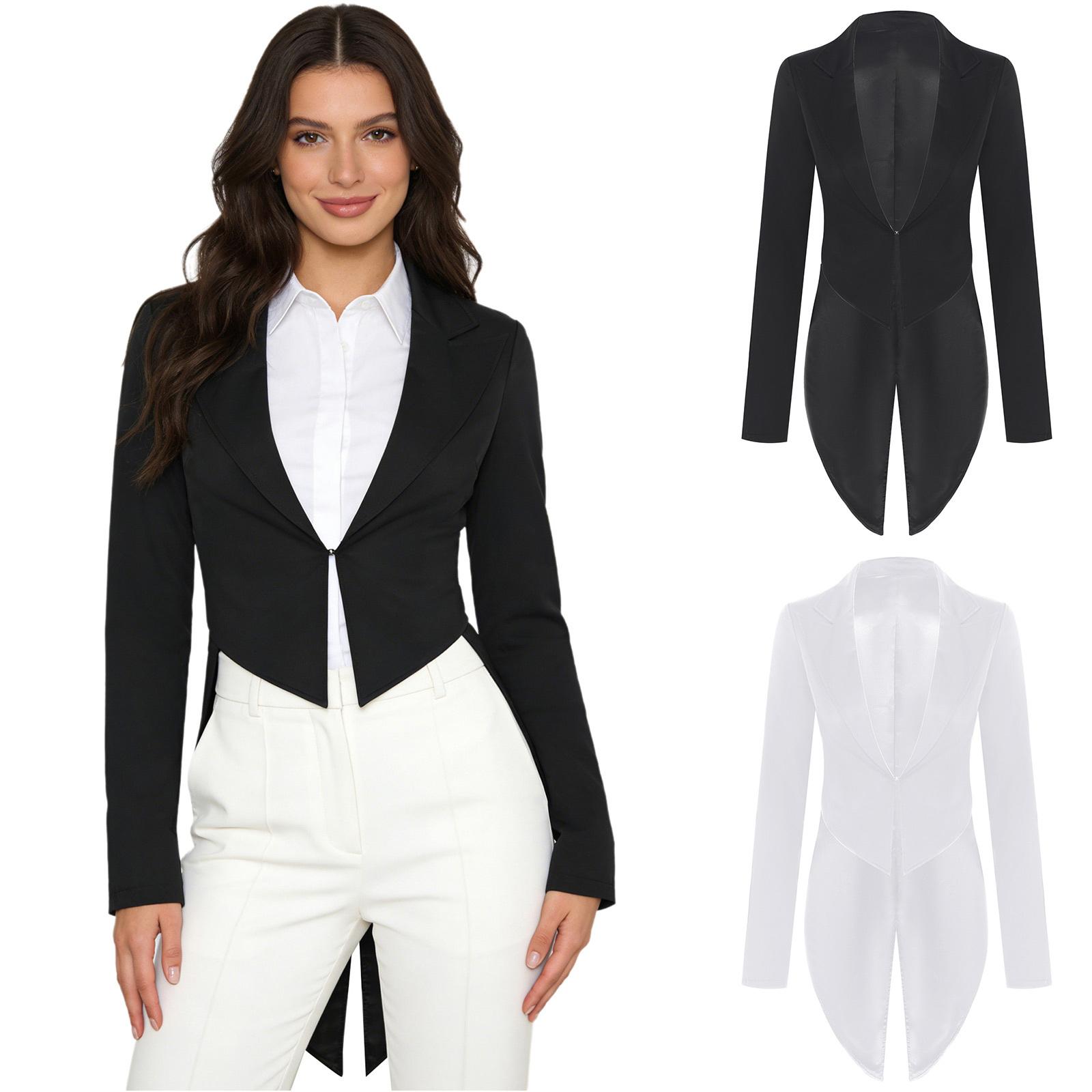 S-XL Women's Vintage Tuxedo Jacket: Swallowtail Peaked Lapel Coat for Cocktail Parties, Waitress Cosplay & Evening Wear cm black